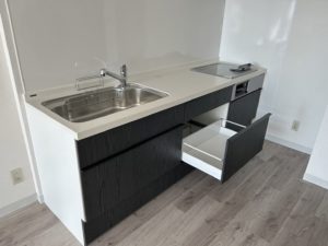 収納・カウンターの造作、床の段差撤去・石張り一式